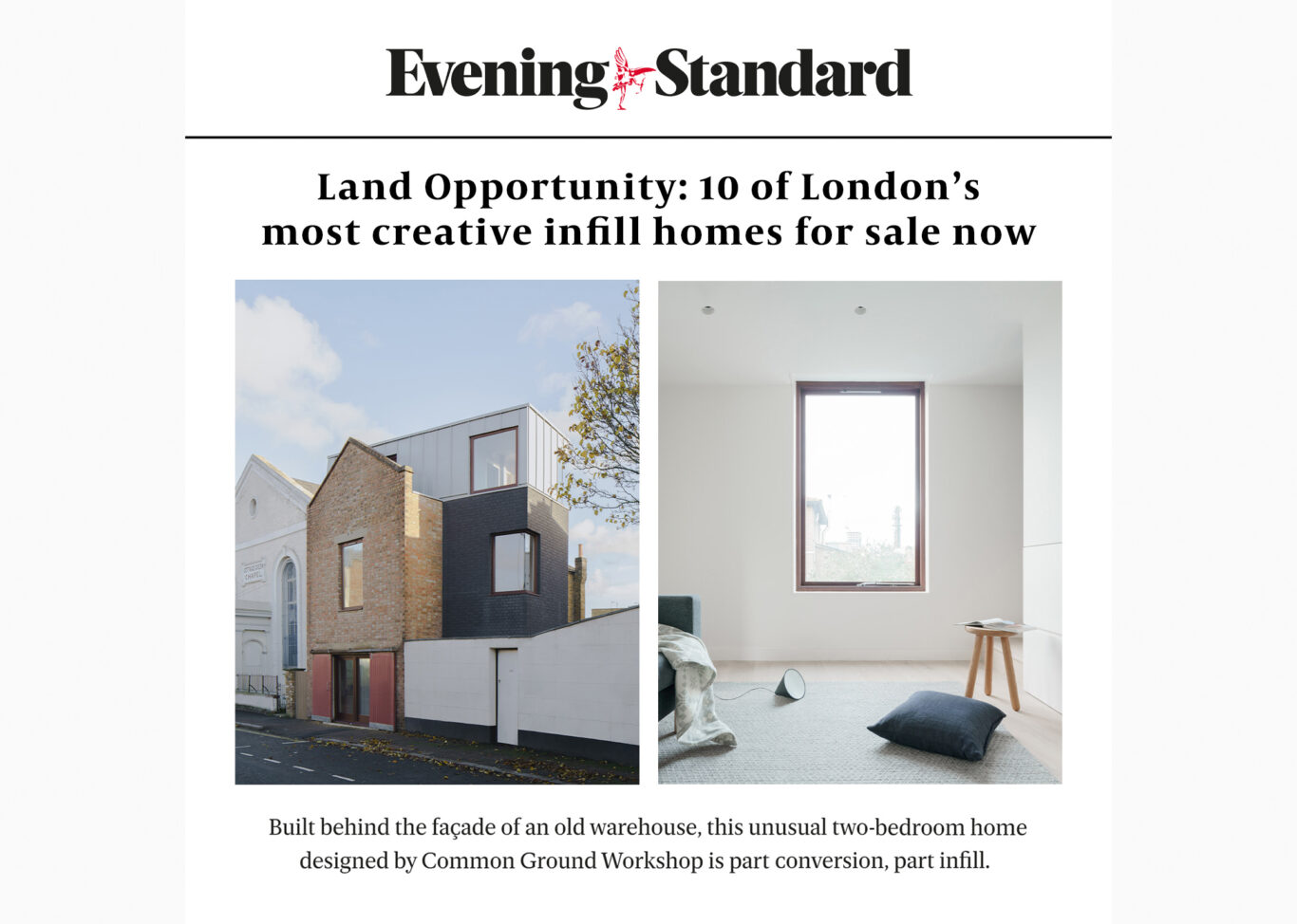 Our first development project ‘Lloyd Eist House’ has been featured in the Evening Standard article ’10 of London’s most creative infill homes for sale now’.