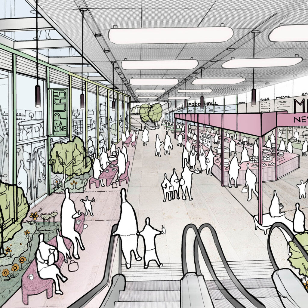 Proposals to rejuvenate the public realm and retail experience over four levels at the iconic One New Change.